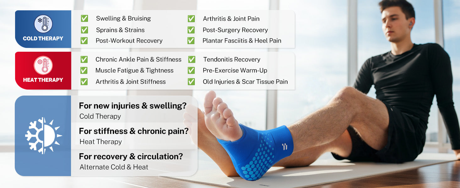 - DUAL COLD & HEAT THERAPY – Whether you need to reduce inflammation or relax stiff muscles, ankle ice pack wrap seamlessly transitions between cold and heat therapy, offering versatile pain relief for any recovery need