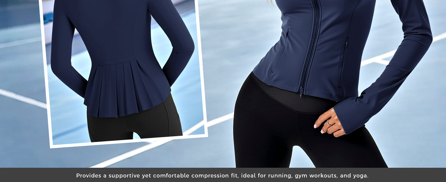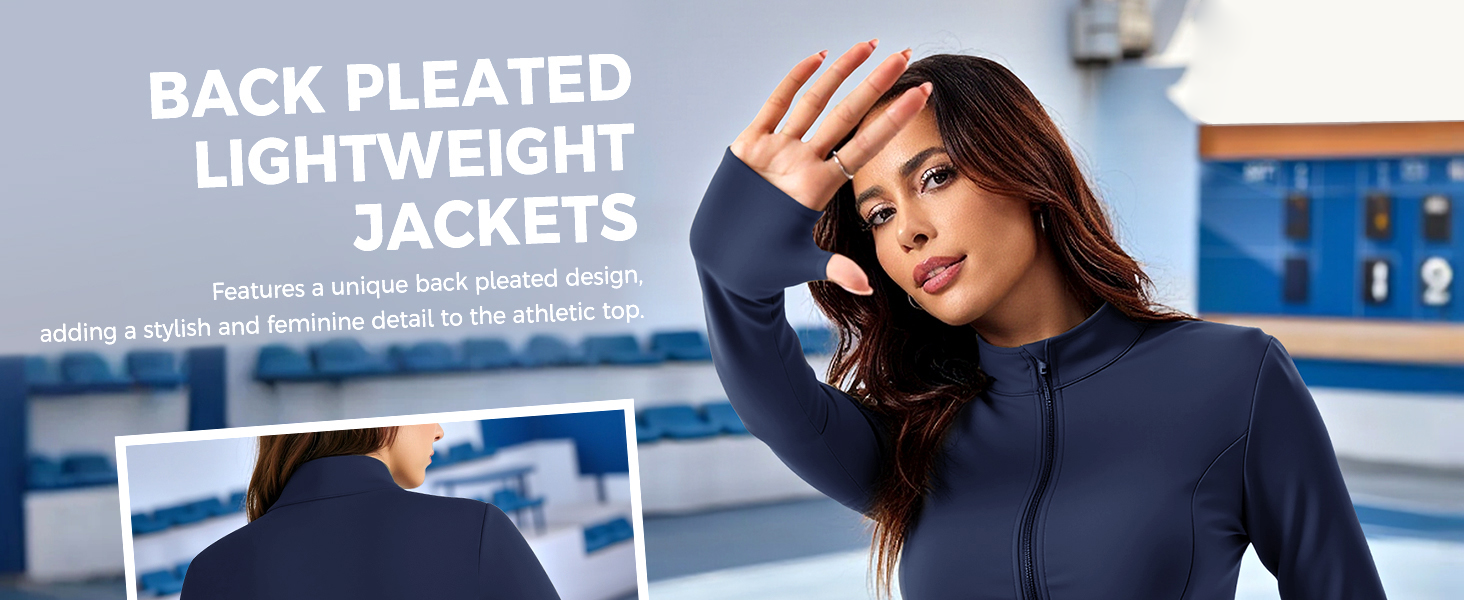 LOVILDS slim Fit Women’s Workout Zip Jacket: Lightweight Pleats + Thumb Holes & Pockets – Perfect for Active Days!